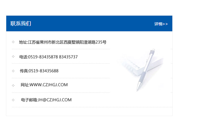 傳真:0519-83435688    郵編:213135    網址:WWW.czjhgj_com.yinhuizhuji.com    電子郵箱:JH@czjhgj_com.yinhuizhuji.com
